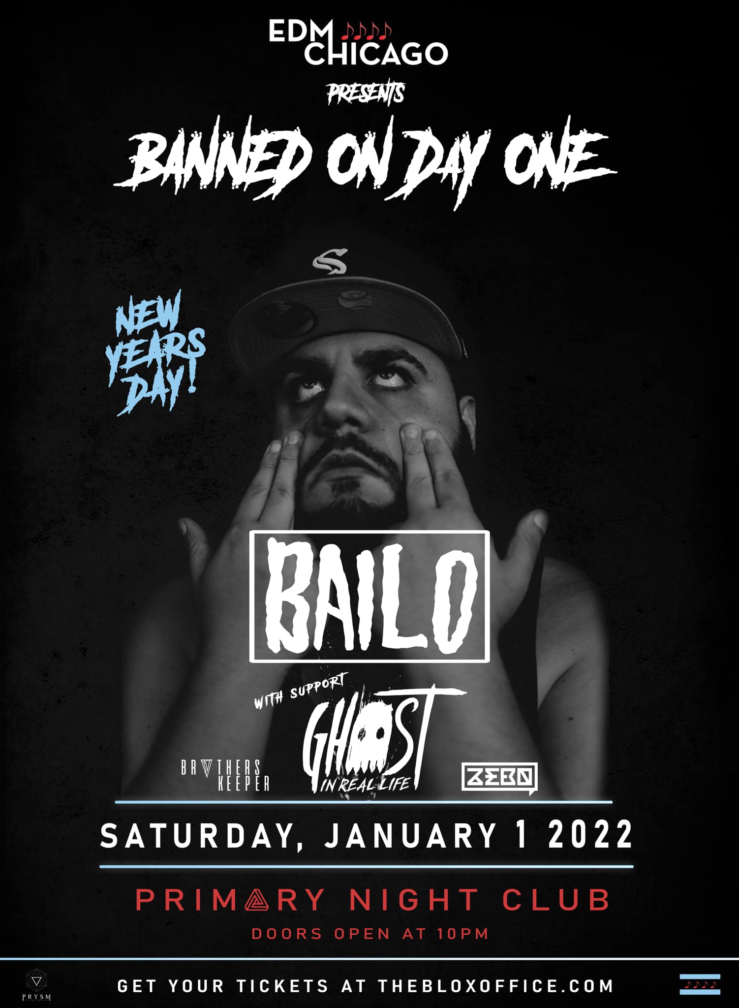 EDM Chicago is kicking off 2022 with a full lineup of bass music at Primary Nightclub featuring Bailo, Ghost in Real Life, and Zebo.