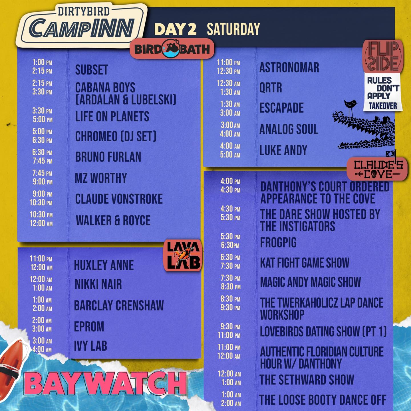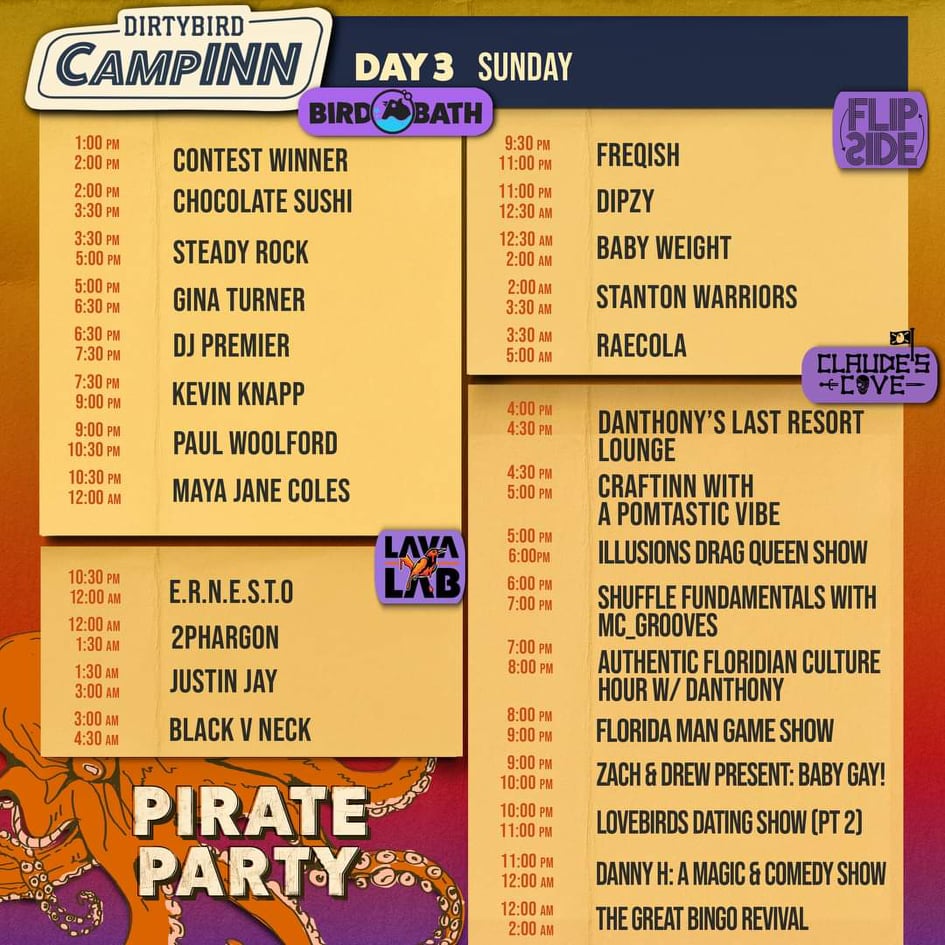 The wait is almost over. Dirtybird CampINN week is finally here! The party starts on Thursday night with a pre-party featuring Loco Dice and Heidi, and it continues all weekend with three straight days of house music, bass music, group activities, and more.