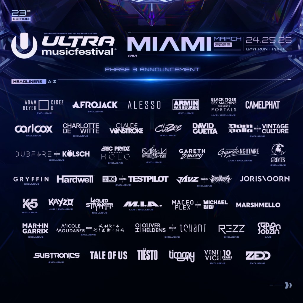Planning for festival season 2023 has officially started. Ultra Music Festival just announced its phase two lineup for March 2023 in Miami, Florida.