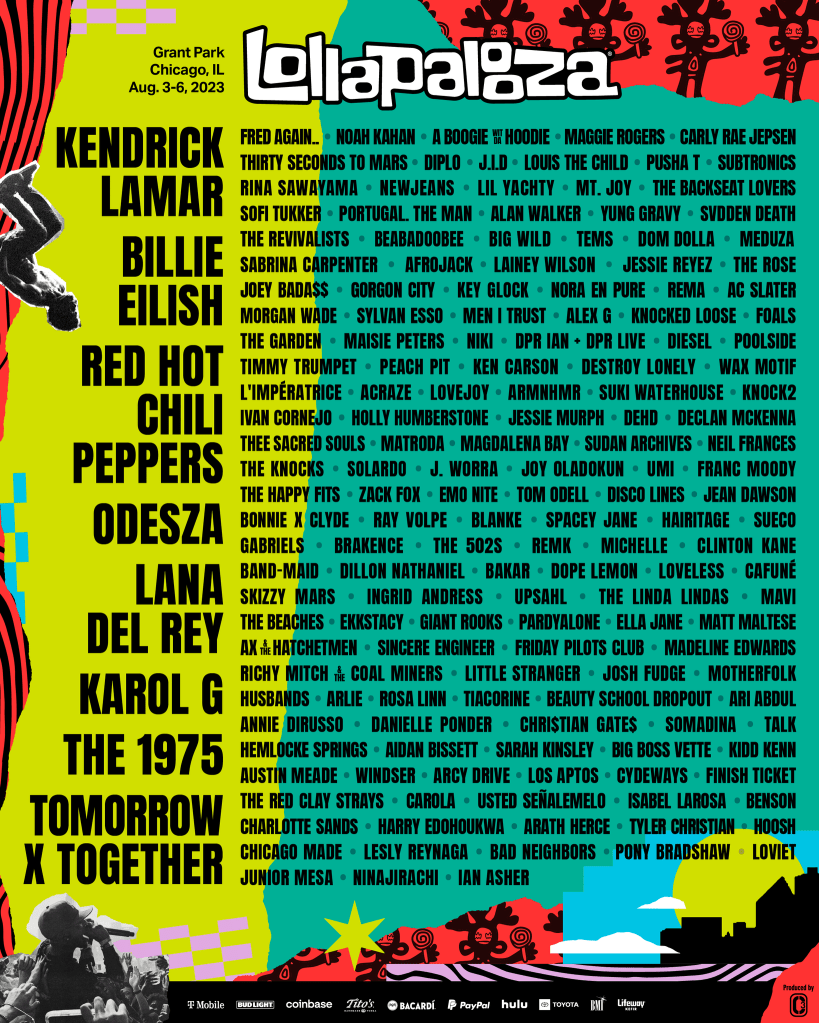 Lollapalooza in downtown Chicago just announced their 2023 lineup with headliners like Kendrick Lamar and Billie Eilish alongside an impressive undercard.