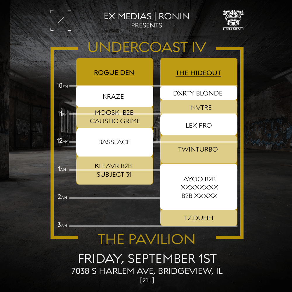 The event is thrown by Chicago collectives Ex Medias and Ronin Productions. There will also be local artists selling merchandise and artwork, and multiple food options as well. The production inside The Pavilion will be stepped up for Undercoast, with curated decorations and Hennessy Sound Design on stage.