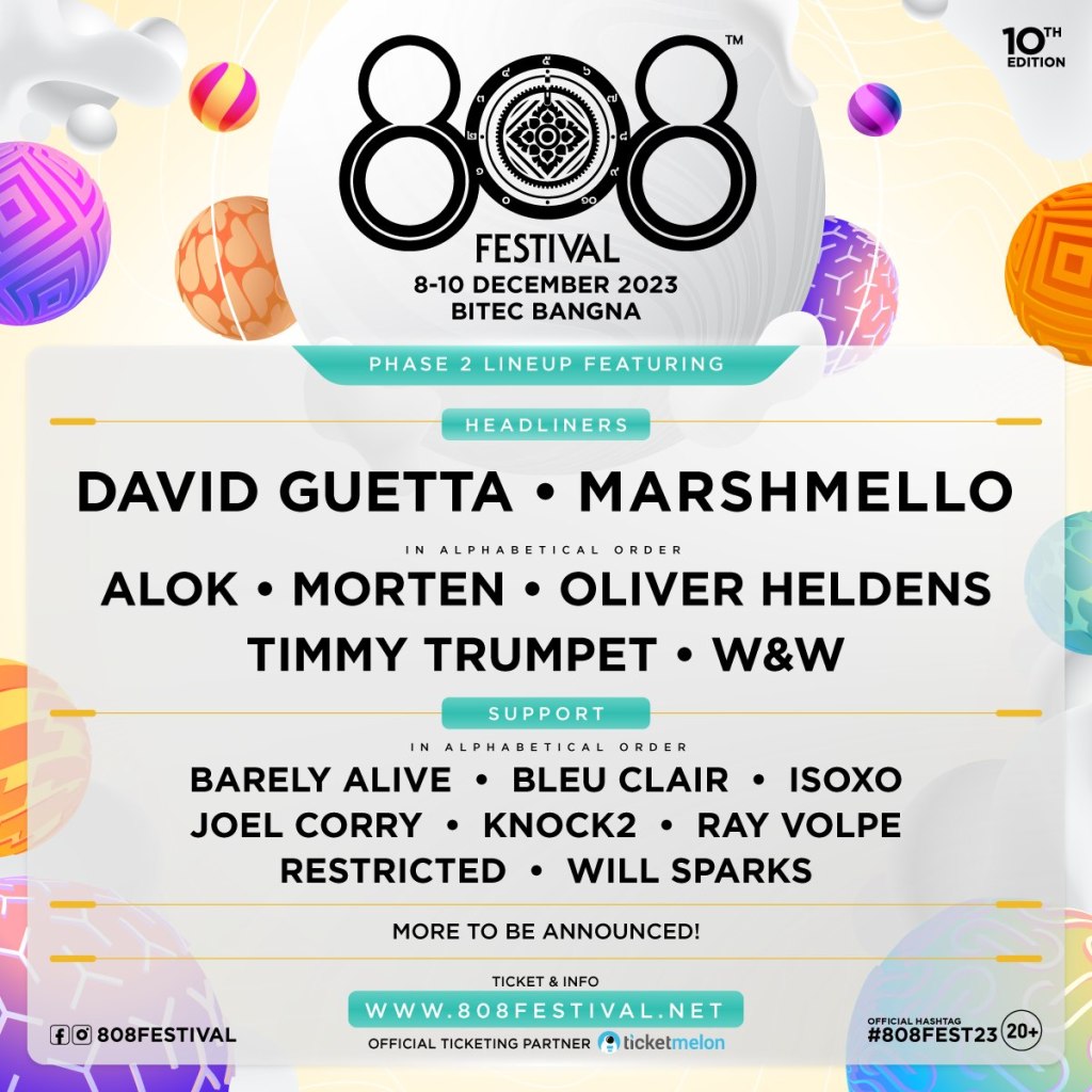 Last year, 808 Festival hosted artists like Zedd, Illenium, DJ Snake, Hardwell, Armin van Buuren, and ACRAZE. 808 Festival 2023 features a similarly sized lineup. Headlined by EDM heavyweights David Guetta and Marshmello, the event will bring a mix of various electronic music genres for a unique event at BITEC in Bangkok, Thailand. The location is an easily accessible convention and event center near downtown.