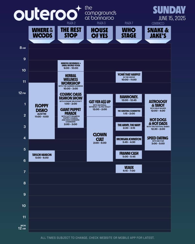 Outeroo Campground 2025 Set Times
