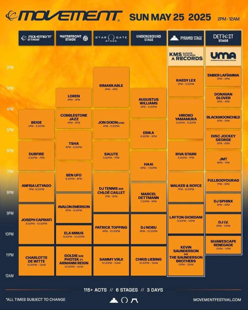 Movement Detroit 2025 Set Times