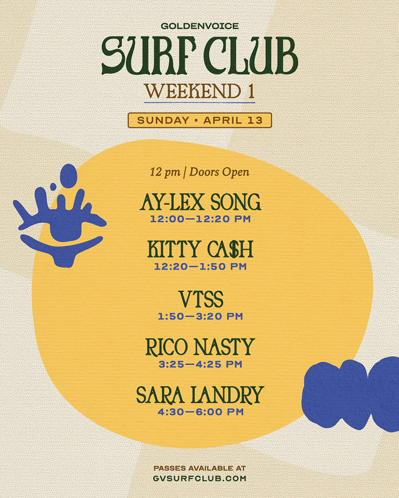 Don’t wait until it’s too late! Coachella weekend is here, and Goldenvoice Surf Club tickets and additional info can be found on gvsf.com.
