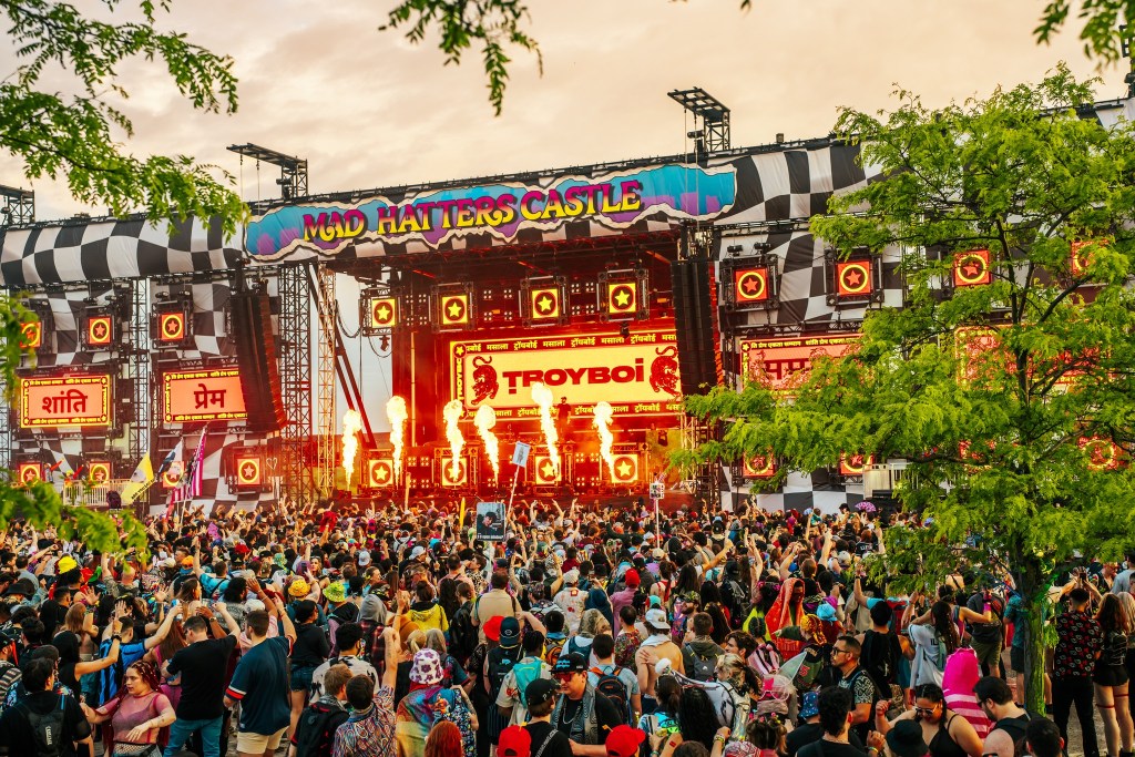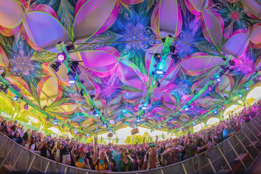 From the moment gates opened Saturday, it was clear this wasn’t just a music festival. It was a world meticulously built to get lost in. Themed stages—Mad Hatter’s Castle, Caterpillar’s Garden, Queen’s Domain, Cheshire Woods—were stocked with giant glowing mushrooms, roaming actors, and even a tea-party lounge. Every element felt intentional, cohesive, and wildly playable.