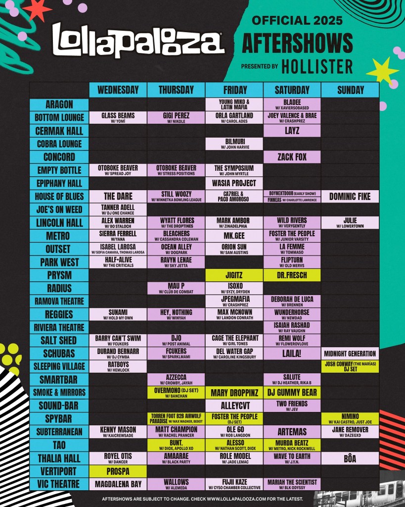 Lollapalooza 2025 Aftershows [Updated 7/8/25]