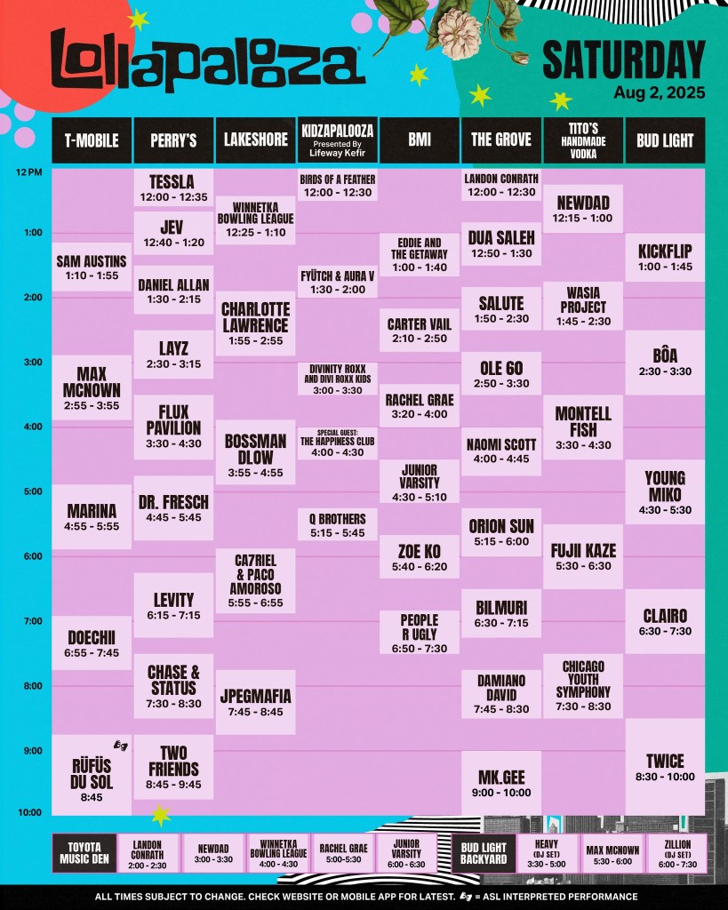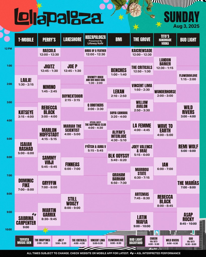 The Lollapalooza set times are out now, and several of our favorite artists are performing early each day of the weekend. From the T-Mobile Stage to Bud Light and Perry’s in between, take a look at some of our can’t-miss artists at Lollapalooza 2025 that might’ve flown under your radar.