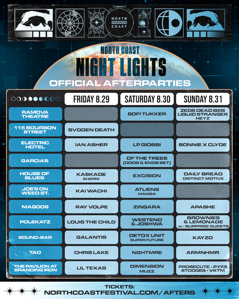 Located just a few miles south of the venue, Brownies & Lemonade is bringing their signature lineup of surprise guests to Polekatz Chicago. As described on the official afters page: yes, it’s a strip club 4 miles from the fest. Polekatz has hosted North Coast afters for the past few years, and is also hosting the Summer’s Last Dance festival in September. There’s no way to know which artists will show up to Brownies & Lemonade until you arrive. Expect a curated night of music from one of the scene’s most distinct event promoters.