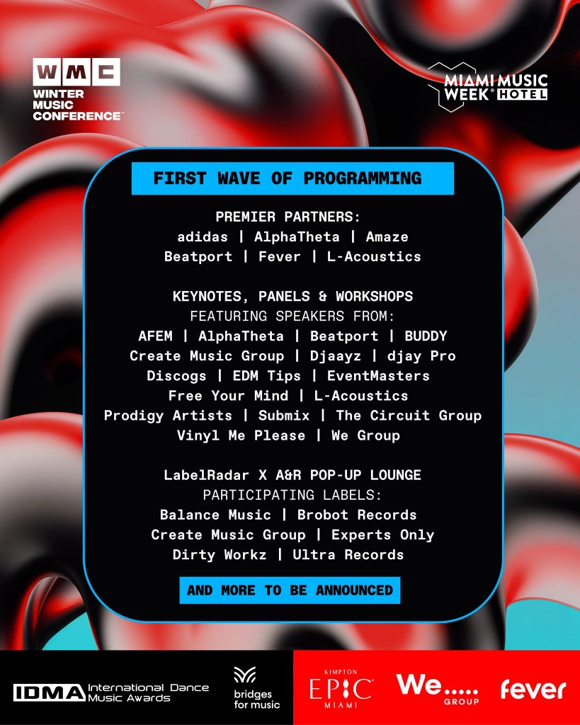 Now held at the Kimpton EPIC Hotel, the 36th edition of WMC will feature a three day rooftop pool party series plus presentations, panel discussions, networking opportunities, and interactive brand activations. The Beatport x WMC pool parties from Tuesday to Thursday of Miami will be announced later. The 2026 conference will also see the return of the International Dance Music Awards (IDMAs).
