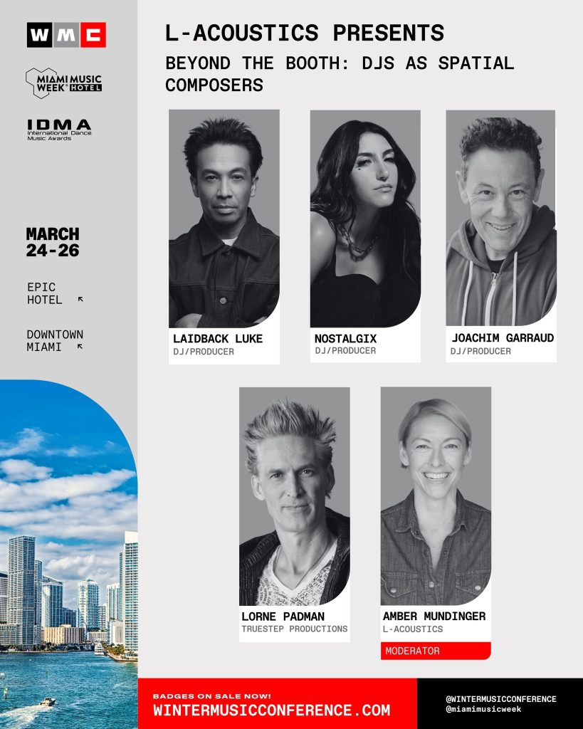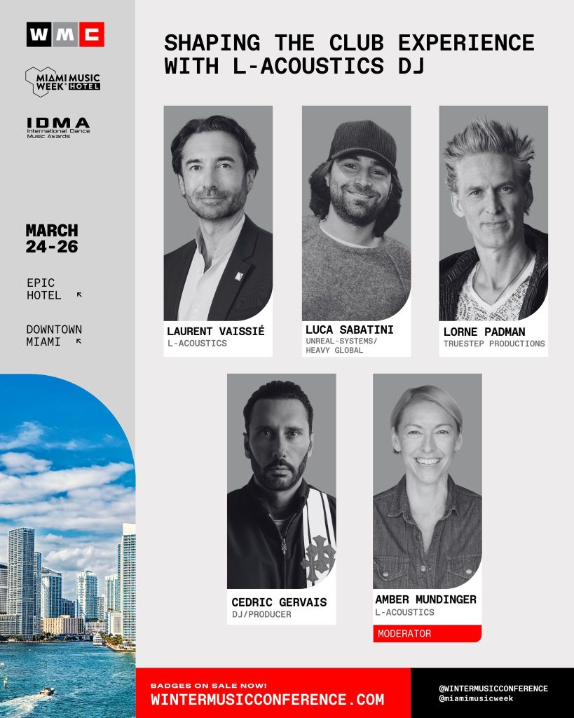 The first wave of WMC programming includes speakers from leading companies such as AlphaTheta, Beatport, Discogs, L-Acoustics, and Prodigy Artists. WMC also offers smaller-format, skills-based sessions led by respected educators and brands. See the first wave of panel topics and workshop sessions below: