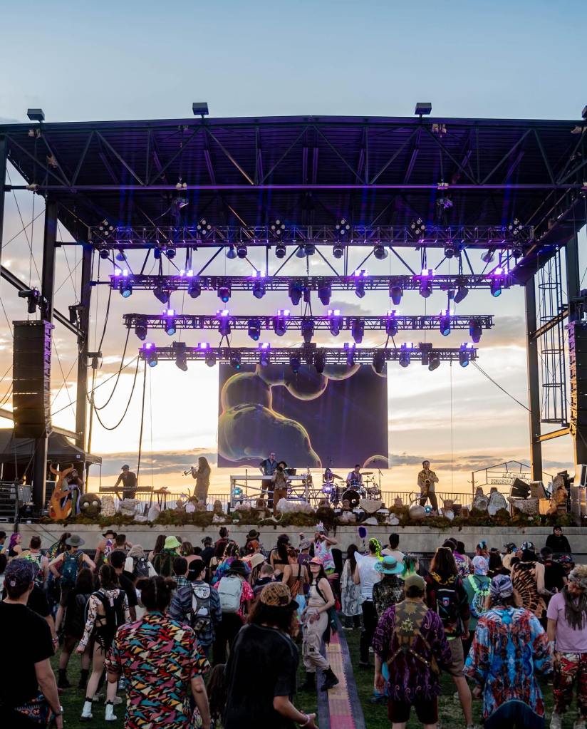 Gem & Jam has a total of four stages within the fairgrounds. The Quartz Stage is more jam band oriented, while the Opal Stage hosts locals and upcoming talent. The festival also has other programming throughout the weekend including yoga and family-oriented activities.